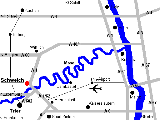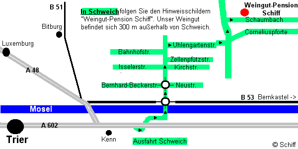 Nehmen Sie bitte die Autobahnabfahrt Schweich.